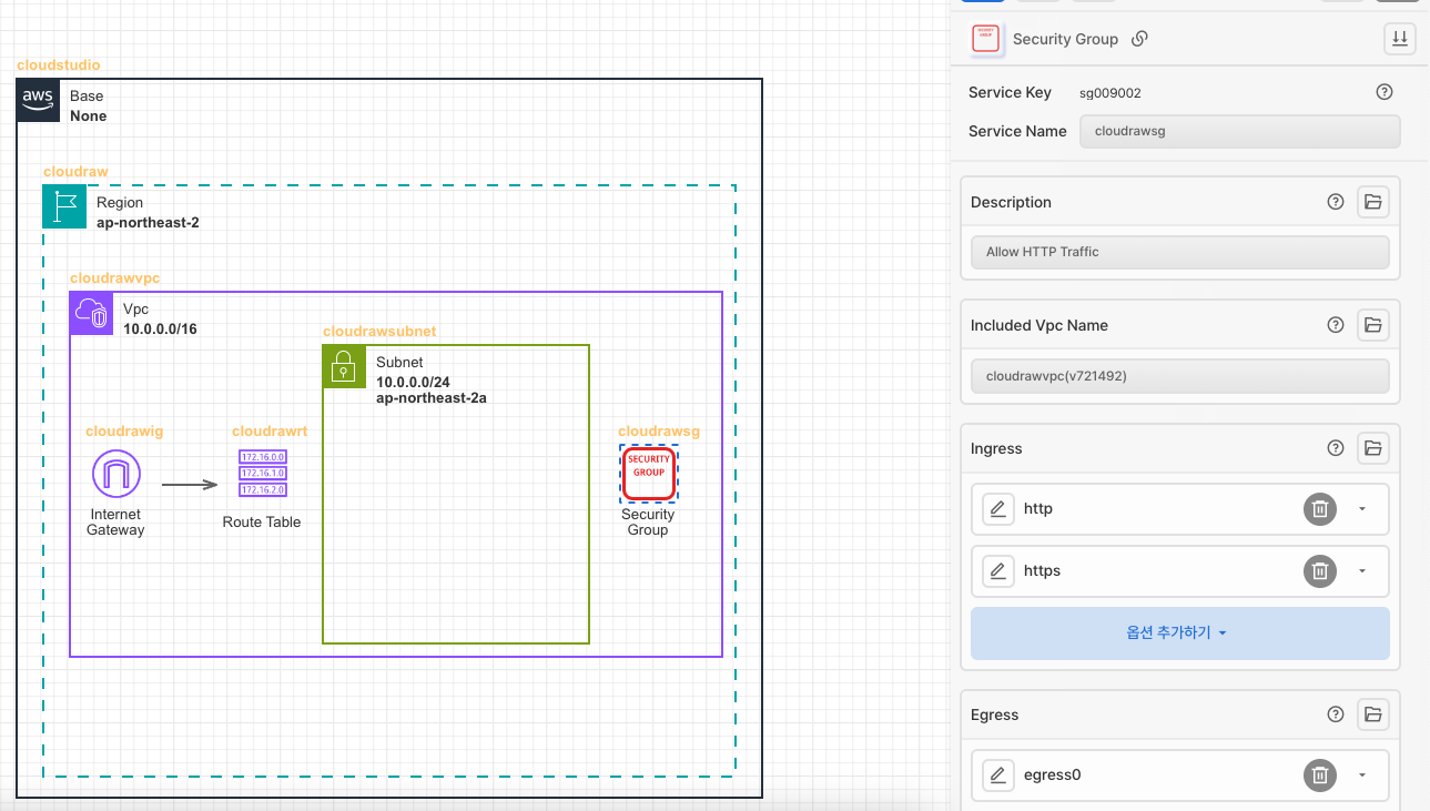 - Linked Security Group Names: Security Group과 선으로 연결하면 자동설정됩니다.