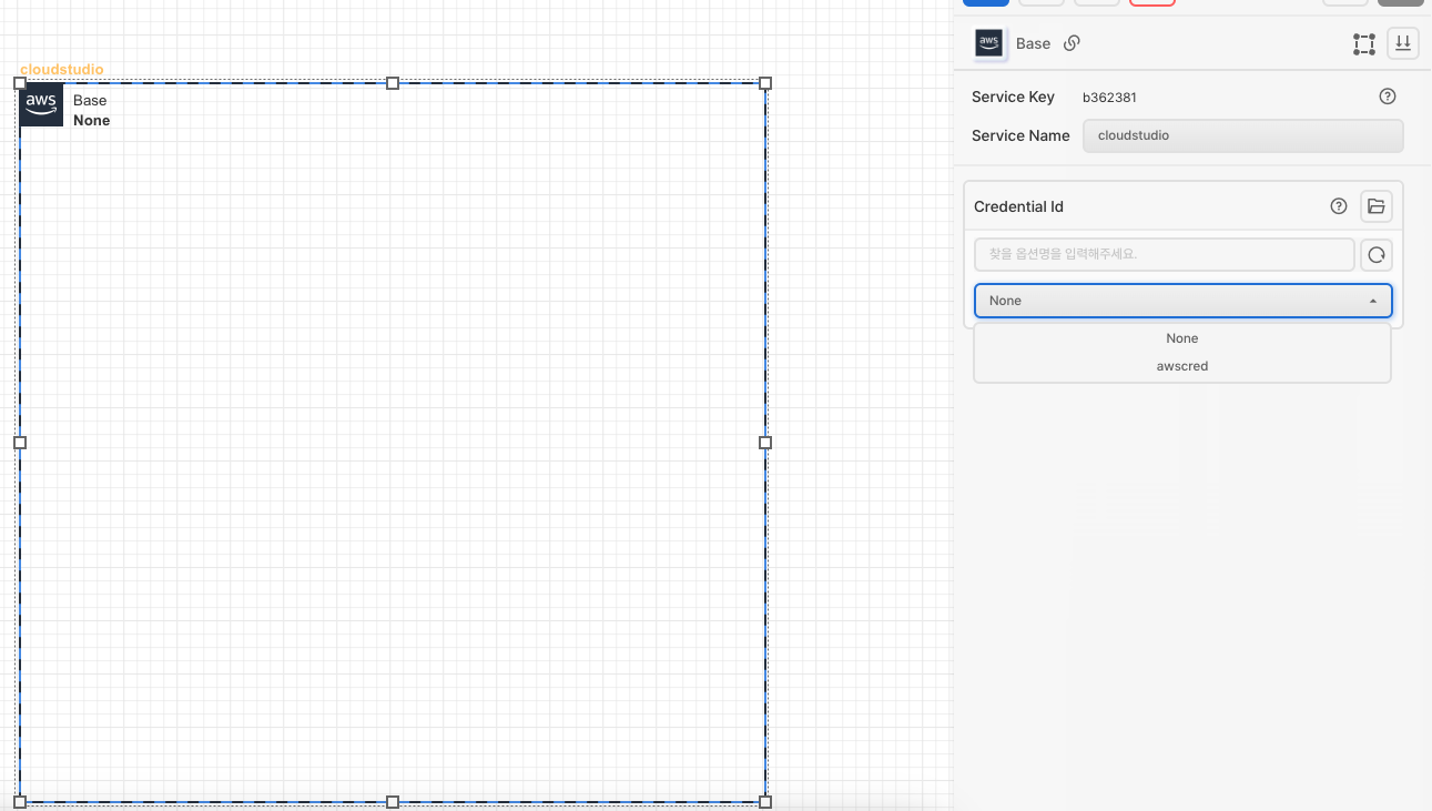 왼쪽 리소스 툴박스에서 Base 아이콘을 가져온 후 등록한 크레덴셜을 선택합니다.