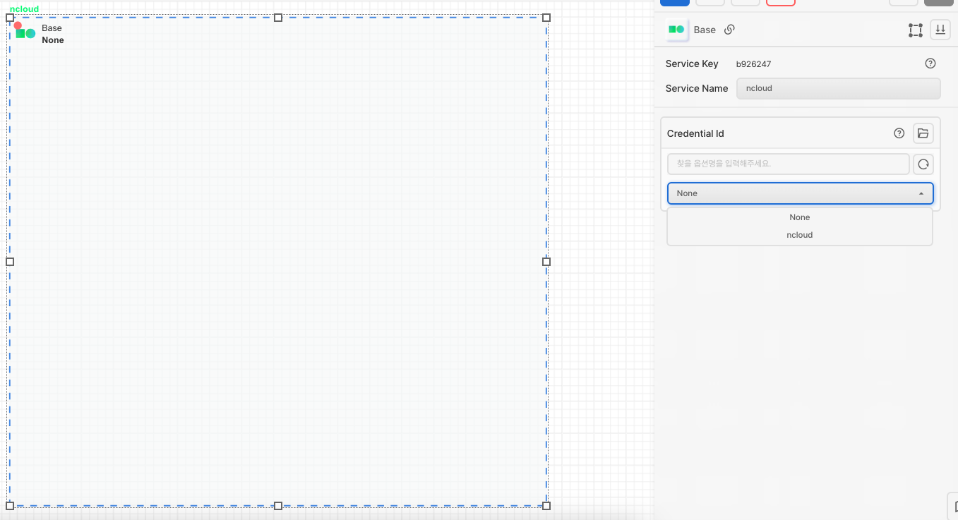 왼쪽 리소스 툴박스에서 Base아이콘을 가져와 배치 한 후 등록한 크레덴셜을 선택합니다.