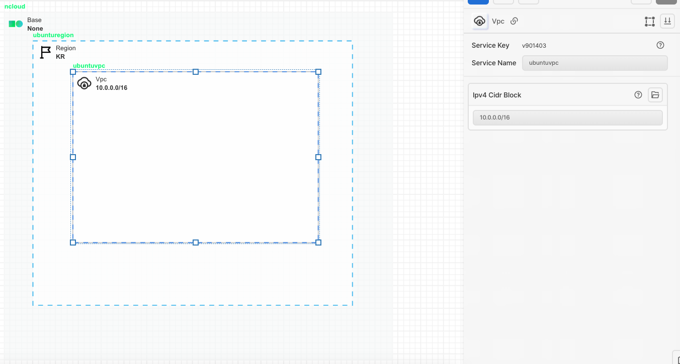 Region 아이콘을 가져 온 후 Base에 안에 배치합니다. Ncloud에서는 한국(KR), 일본(JPN), 싱가폴(SGN) 리전을 제공하고 있습니다.