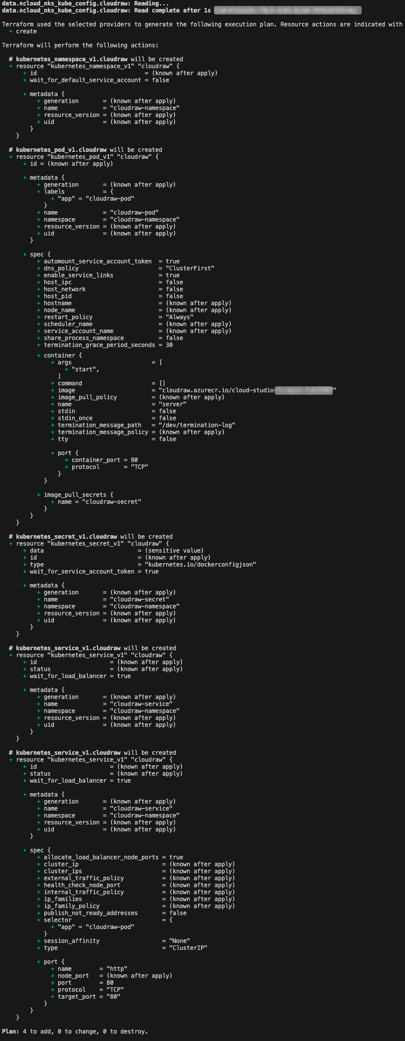 name = kubernetes_secret_v1.cloudraw.metadata[0].name # image pull에 사용되는 secret 이름, public image 사용시 불필요