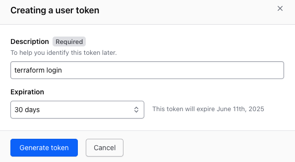 - 해당 명령어를 실행하면 웹 브라우저에서 HCP Terraform이 실행되며 로그인 후 Token 발행 페이지로 이동합니다.