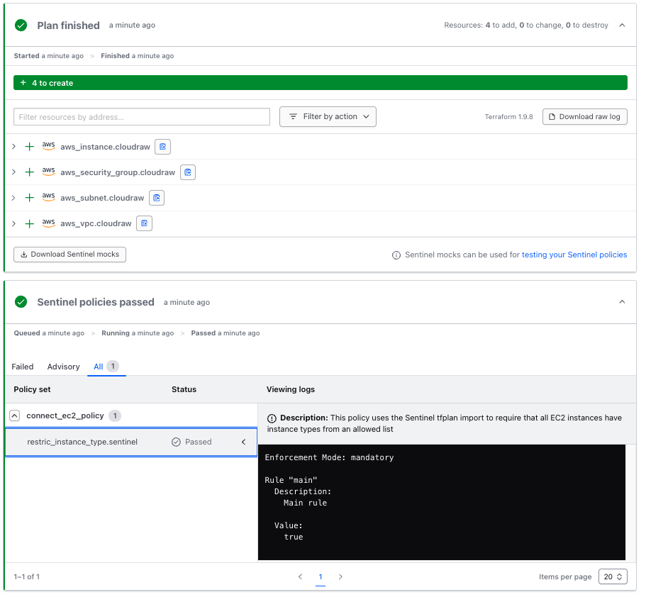 Sentinel은 HCP Terraform과 Terraform Enterprise에서 제공되며 위 기능을 활용하여 더욱 안전한 클라우드 환경을 구성하고 활용할 수 있습니다.