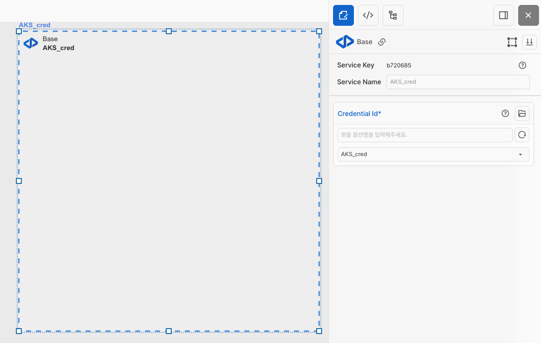 캔버스에서 Base 아이콘을 가져온 후 등록한 크레덴셜을 선택합니다.