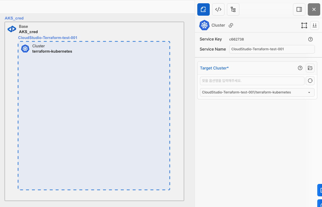 Cluster 아이콘을 가져옵니다. Target Cluster에 크레덴셜로 조회된 Cluster를 선택합니다.