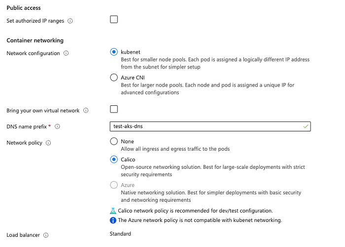 • Network configuration : kubenet