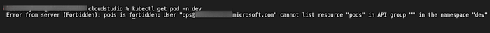 하지만 dev를 제외한 namespace에서는 kubectl 명령을 실행할 수 없습니다.