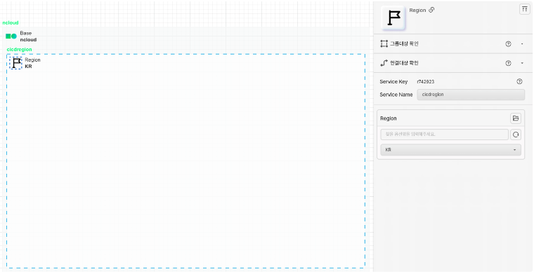 Region 아이콘을 가져와 Base 안에 배치합니다. 리소스를 생성할 리전을 선택합니다.