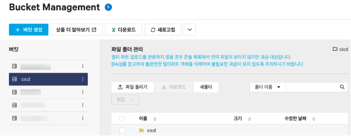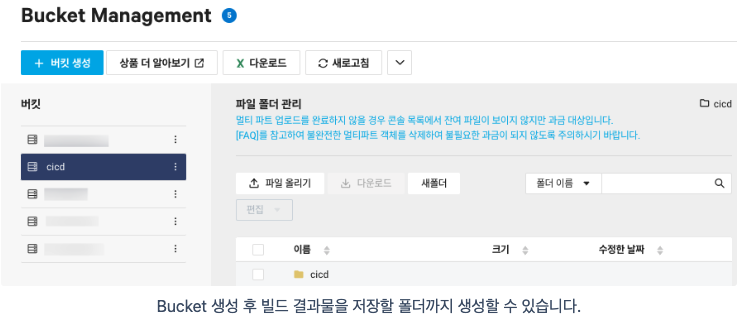 - Target Object Storage Bucket Name : cicd - 빌드 결과물이 저장된 Bucket 이름을 설정합니다.