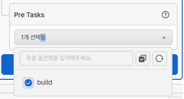- Pre Tasks : build - Additional Task 이전에 선행되어야 하는 작업을 설정할 수 있습니다. Default Task로 설정한 build 작업을 선행작업으로 설정합니다.