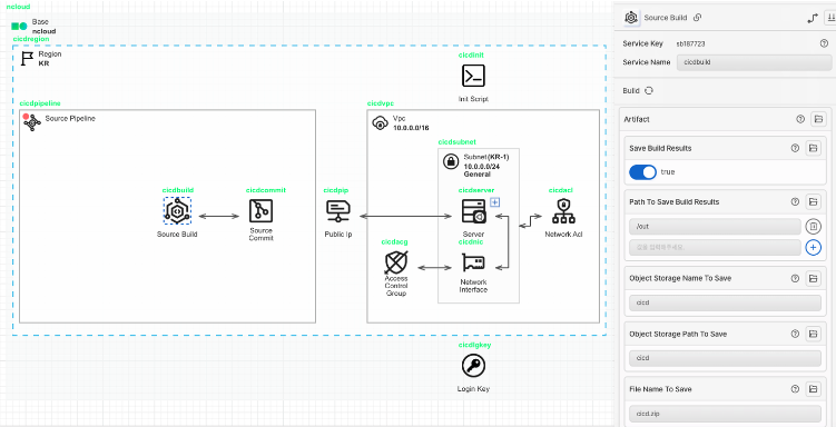 첫 번째 아키텍처가 정상적으로 배포 되었다면 Ncloud 콘솔에서 빌드 작업을 수행하고, ObjectStorage에 빌드결과물이 저장된 것을