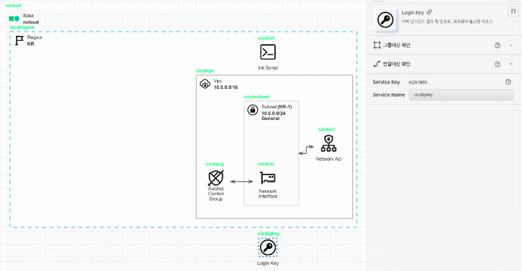 Login Key 아이콘을 가져와 Base 안에 배치합니다. Login Key는 서버 인스턴스 접속 및 암호화, 복호화에 필요한 리소스입니다.