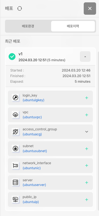 배포하기를 통해 연동된 크레덴셜을 타겟으로 실제 인프라를 배포할 수 있습니다.