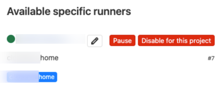- 프로젝트 > Settings > CI/CD > Runners > Specific Runners > Available Specific Runners에서 확인